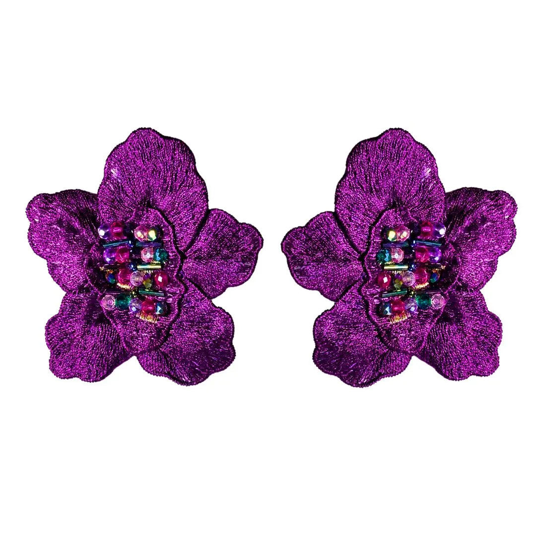 Flores bordadas a mano con cristales murano en su centro. Ultra livianos ya que son casi completos de hilo.
