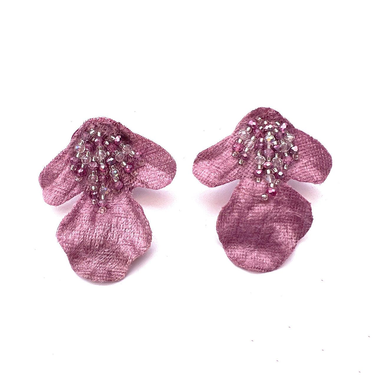 Flores de terciopelo hechas a mano, con cristales murano en su centro.